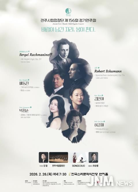 제이앤엠뉴스 | 전주시립합창단은 오는 26일 오후 7시 30분, 한국소리문화의전당 연지홀에서 제156회 정기연주회 ‘바람이 남긴 자리, 봄이 핀다’를 선보인다.
