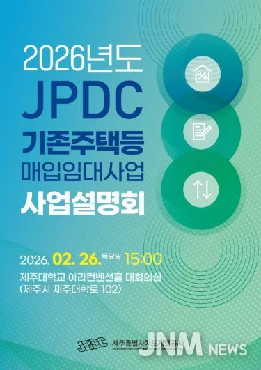 제주특별자치도개발공사(사장 백경훈)는 ‘2026년도 기존주택등 매입임대사업’의 원활한 추진과 참여 확대를 위해 오는 26일(목) 15시 제주대학교 아라컨벤션홀(제주시 제주대학로 102)에서 ‘2026년도 기존주택등 매입임대사업 사업설명회’를 개최한다고 밝혔다.