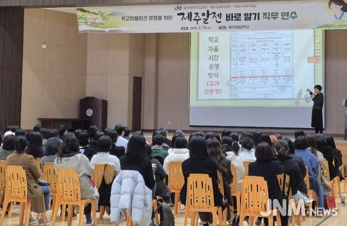 이번 연수는 2022 개정 교육과정의 안정적 정착과 학교자율시간의 내실 있는 운영을 지원하기 위해 도교육청과 제주시·서귀포시교육지원청이 공동 주관했으며 지역화 교과서 ‘제주 알젠’을 활용한 특색 있는 교육과정 운영방안을 공유했다.