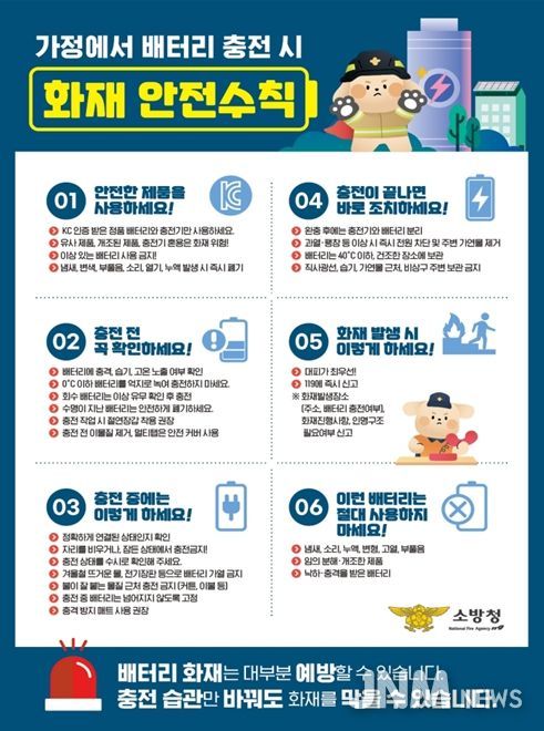 아울러, 지난 11월 서울에서 사망자가 발생한 "리튬이온 보조배터리 화재'를 재현 실험한 결과, 배터리 화재의 위험성을 재확인할 수 있었다. 침대 위 과충전 상황을 재현한 결과, 작은 리튬이온 보조배터리에서 시작된 열폭주가 순식간에 침구류로 옮겨붙으며 집안 전체로 화재가 확대되는 성상을 확인했다. 이를 토대로 화재 위험성을 알리고 화재안전수칙에 반영하는 등 적극적인 홍보활동도 전개할 예정이다.