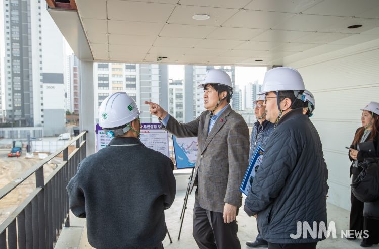 제이앤엠뉴스 | 인천 서구는 2월 27일 검단구 임시청사 건설 현장을 찾아 공사 진행 상황을 확인하고 근로자 안전 확보를 강조했다.