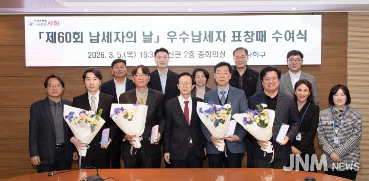 제이앤엠뉴스 | 부산 사하구는 '제60회 납세자의 날'을 기념해 지난 5일 우수납세자 표창패 수여식을 열고, 지방세를 성실히 납부한 이들에게 감사를 표했다.