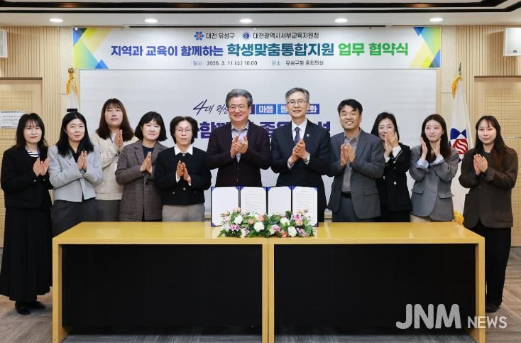 유성구는 11일 구청 중회의실에서 대전서부교육지원청과 업무 협약을 맺었다. 이번 협약은 3월 1일 시행된 ‘학생맞춤통합지원법’에 따라, 복합적 어려움에 놓인 학생을 조기에 찾아내고 통합적으로 지원하기 위한 취지로 추진됐다.
