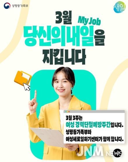 제이앤엠뉴스 | 성평등가족부와 여성새로일하기센터가 3월 3주를 여성 경력단절예방주간으로 지정해 다양한 지원 프로그램을 운영하고 있다.