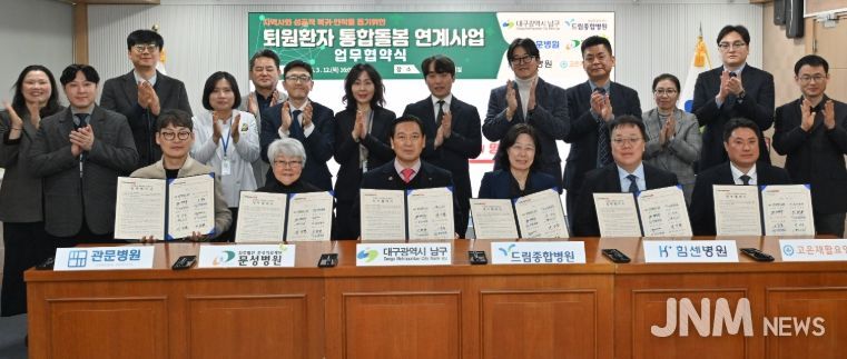제이앤엠뉴스 | 대구 남구는 지난 12일 지역 내 5개 병원과 함께 퇴원환자의 지역사회 복귀를 지원하는 통합돌봄 연계사업을 위한 업무협약을 체결했다.