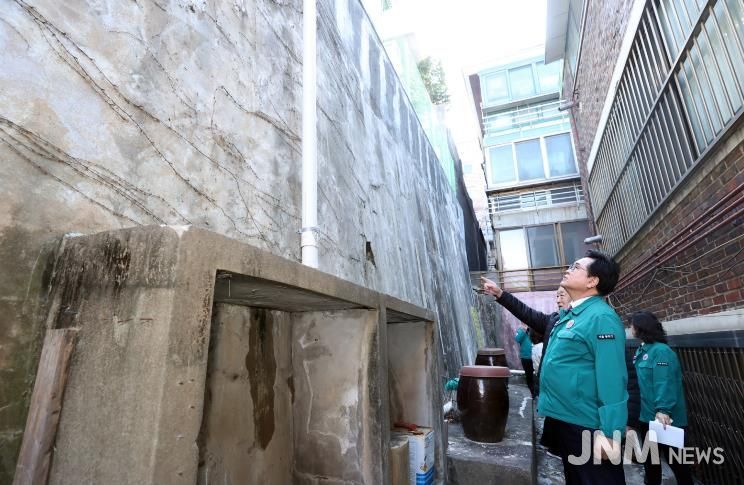 박일하 동작구청장은 13일 사당4동과 상도1동을 찾아 노후된 석축, 옹벽, 축대, 경사면 등의 손상 여부와 안전 상태를 직접 확인했다. 이 자리에서는 콘크리트 구조물에서 나타날 수 있는 미장 탈락, 균열, 배부름 등 동결융해 현상에 중점을 두고 점검이 이뤄졌다.