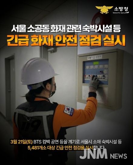 제이앤엠뉴스 | 소방청이 서울 지역 숙박시설을 대상으로 긴급 화재안전 점검을 진행했다.