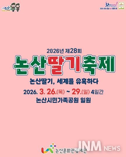 제이앤엠뉴스 | 논산딸기축제가 3월 26일부터 29일까지 시민가족공원 일원에서 개최된다.