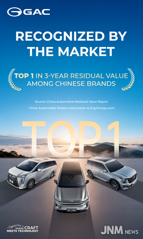 제이앤엠뉴스 | 광저우, 중국 2026년 3월 18일 -- 중국 자동차 딜러 협회(China Automobile Dealers Association)가 발표한 최근 2월 잔존 가치율 보고서에 따르면, GAC가 3년 잔존 가치율에서 중국 국내 브랜드 선두 자리를 지키고 있는 것으로 나타났다. 모델별 성과 측면에서 GAC GS8은 잔존 가치율 77.0%로 중국 브랜드 중 중형 SUV 부문 1위를 차지했다. GAC E8 PHEV, GAC E9, AION RT, AION S 등 다른 GAC 모델들도 각 부문에서 상위권에 올랐다. 특히 GAC E9와 AION Y는 각각 플러그인 하이브리드 및 순수 전기차 부문 전체 3년 잔존 가치율 순위 상위 15위에 포함됐다.