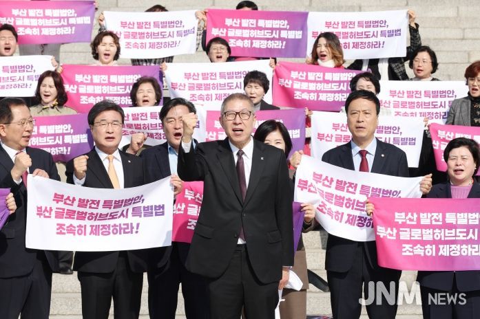 제이앤엠뉴스 | 부산시가 '부산 글로벌허브도시특별법'의 신속한 입법을 요구하며 국회의사당 앞에서 기자회견을 열었다.