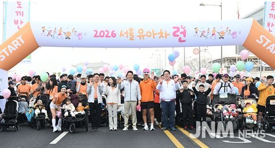 제이앤엠뉴스 | 서울광장과 마포대교를 거쳐 여의도공원까지 이어지는 8km 구간에서 '2026 유아차 런'이 28일 광화문광장에서 시작됐다. 오세훈 서울시장은 이날 오전 행사에 참석해 약 5천 가족에게 격려의 말을 전하고, 참가자들이 안전하게 완주할 것을 당부했다.