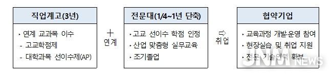 학생들은 고교 단계에서 대학과 연계된 과목을 이수해 대학 학점을 미리 취득할 수 있으며, 이를 통해 전문학사 취득 기간을 1학기 단축하고 전공 역량을 갖춘 상태로 산업현장에 조기 진출할 수 있다. 교육부는 향후 사업 성과에 따라 관련 법령 개정을 검토해 전문학사 취득 수업연한을 최대 1년까지 줄이는 방안도 고려하고 있다.