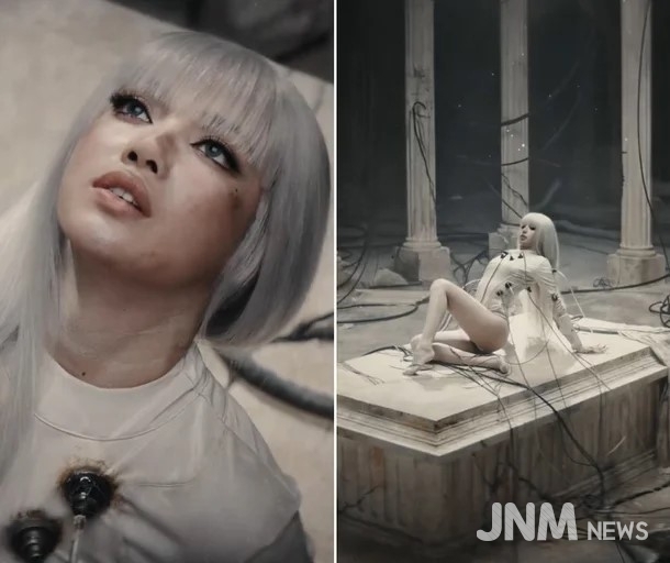 공개된 티저 영상에서 리사는 기존의 팝스타 이미지를 넘어, 기계적이면서도 신비로운 '안드로이드' 혹은 '타락 천사'를 연상시키는 독특한 비주얼을 선보였다. 허리까지 내려오는 긴 은발 헤어와 정갈한 뱅 스타일의 앞머리, 그리고 몸에 밀착되는 화이트 바디수트에 검은색 플러그와 전선들이 연결된 의상은 마치 실험실 속 사이보그를 연상케 했다. 고대 신전을 연상시키는 배경 속에서 몽환적이면서도 비장한 표정, 그리고 석조 제단 위에 누운 포즈 등은 리사의 새로운 아우라를 강조했다.