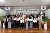 제이앤엠뉴스 | 재단법인 아천문화교류재단(ACEF)이 주최-주관한 '제12회 아천효문화예술제’가 11월 1일 오후3시 아천문화교류센터에서 시상식이 개최됐다. 이날 행사에는 부모사랑 나라사랑의 올바른 가치관을 심어주기 위해 문화예술 부문의 우수한 인재들을 발굴 시상하고 올해로 12회를 맞았다. 시상식은 이승훈의 사회로 식전행사에 노 오케스트라의 연주를 시작으로 개회식, 국민의례등의 순서로 진행되었으며, 재단법인 아천문화교류재단 이사장인 성민스님은 인사말을 통하여 로마 제국시대의 철학자, 정치가, 작가, 그리고 스토아 철학의 대표인물인 루키우스 안나이우스 세네카의 말을 빌어서 인생은 철학이고, 철학은 삶이라고 하면서 평안속에서 행동으로 옮기는 삶이 진정으로 미래를 꿈꾸는 삶이라고 이야기하면서 수상자분들의 축하의 말씀과 더블어 그들의 삶이 희망과 꿈이 넘치기를 믿는다고 피력했다. 수상과 관련, 최고상인 국회의장상에는 고봉국님, 특별상인 문화체육관광부장관상에는 목포애향중학교 송은유학생, 학생부종합대상에는 한밭여자중학교 이인혜학생, 서울특별시장상에는 정호겸, 권수지님. 경기도지사상에는 박상우, 윤세화님, 인천시장상에는 박지선님
