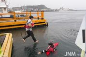 제이앤엠뉴스 | 울진해양경찰서는 구조 현장에서 경찰관 자신의 안전을 스스로 지킬 수 있는 안전문화 확산을 위해 'SAVE ON-SELF SAFETY'(“자신의 안전은 스스로 지키자”) 캠페인을 추진 중에 있으며, 단순한 구호를 넘어 현장 직원들이 직접 체득할 수 있는 실질적인 교육·훈련을 실시하고 있다고 4일 밝혔다. 이번 교육·훈련은 구조 경험이 부족한 파출소 근무 경찰관들의 안전확보 역량 강화를 목표로 지난 10월부터 11월까지 관내 파출소를 대상으로 진행되고 있다. 특히 구조대 주관으로 진행되는 이번 훈련은 ▲구조자 안전 확보 요령, ▲상황별 초동조치 훈련, ▲사고유형별 대응훈련, ▲구조장비 활용 실습, ▲생존수영 훈련 등 실질적인 경험으로 체득할 수 있게 구성되어, 파출소 현장 경찰관들의 자신감과 전문성을 향상시키는 훈련이 이뤄지고 있다. 이번 훈련에 참여한 현장 경찰관들은 “그동안 실제 바다에 직접 들어가 구조활동을 하는 데 다소 두려움이 있었으나, 이번 훈련을 통해 위험 상황에 대한 대처능력과 자신감이 크게 향상됐다”고 입을 모았다. 또한, “단순히 구조 장비를 사용하는 법을 배우는 것을