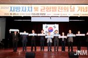 제이앤엠뉴스 | 구리시의회는 10월 29일 ‘지방자치 및 균형발전의 날’을 맞이하여 기념식을 비롯한 다양한 부대행사를 성황리에 마무리했다. ‘지방자치 및 균형발전의 날’은 1987년 6월 민주항쟁의 결과로 그해 10월 29일 대통령 직선제와 지방자치제의 부활을 담고 있는 9차 개헌이 이루어진 것을 기념하기 위해 제정됐으며, 2012년 제정 당시에는 ‘지방자치의 날’이었으나 2023년 7월 10일 현재의 이름으로 바뀌었다. 올해로 세 번째를 맞는 이번 기념행사는 ‘지방자치의 양 수레바퀴’라 할 수 있는 구리시와 공동주최하고, 구리시주민자치협의회와 공동주관하여 지방자치의 의미와 가치를 더했다. 이날 기념식에서는 엄진섭 구리시 부시장과 구리시주민자치협의회 박승원 회장 및 주민자치 위원 그리고 김용호 의정회 회장을 비롯한 역대 구리시의회 의원 등 200여 명이 참석하여 자리를 빛냈으며, 지방자치 발전을 위해 헌신한 지역주민 등 유공자 30명에게는 구리시의회 의장, 구리시장, 구리시 국회의원 표창을 수여했다. 이번 행사에는 기념식뿐 아니라 구리시 실버합창단이 사전공연으로 아름다운 화합의 하모니를 뽐냈고, 각
