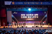 제이앤엠뉴스 | 경상국립대학교는 10월 20일 오전 10시 가좌캠퍼스 GNU컨벤션센터 2층 대강당에서 개교 77주년 기념식을 개최했다. 개교기념식은 개식, 국민의례, 대학 연혁 보고, 개척시 낭송, 총장 기념사, 축사, 시상식, 비전 선포식, 교가 제창, 기념 촬영 등의 순으로 진행했다. 개교기념식 행사는 경상국립대학교 유튜브 채널을 통해 실시간 송출했다. 경상국립대학교는 기념식에서 각종 시상식[개척명예장, 총장 특별상, 개척한림원 표창, 7인의 영리서처(Young Researcher) 현판 수여, 장기근속상]을 마련하여 대학 발전에 기여한 교내·외 인사와 우수 연구자들의 공로를 기렸다. ▲개척명예장은 ㈜영남소방엔지니어링 류상수 대표에게 수여했다. 류상수 대표는 경상국립대학교 농업기계공학과를 졸업(1982년)했으며, 삼성공조(주), 안전보건공단 등을 거쳐 1996년에 ㈜영남소방엔지니어링에 입사 후 2005년 대표이사로 취임했다. 3월 14일 대학발전기금 1억 원을 출연하며 “나눔을 받아야 하는 대상은 많지만 모교 후배들의 장학을 위한 발전기금으로 기부하는 것이 무엇보다도 가치 있는 일이고, 그들로 하여금 또 다