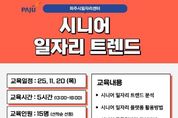 제이앤엠뉴스 | 파주시는 10월 17일부터 11월 12일까지 ‘시니어 일자리 트렌드’ 교육에 참여할 교육생 15명을 모집한다. 이번 교육은 노년층의 취업률 향상을 위한 프로그램으로, 파주시에 거주하는 60세 이상 구직자를 대상으로 진행된다. 교육 과정은 ▲노인 일자리 동향 ▲일자리 유형별 특징 ▲참여 절차 및 취업 연계 방안 등이며, 노년층이 실제 일자리에 참여하는 데 필요한 정보를 습득할 수 있도록 구성됐다. 교육 신청은 파주시 일자리센터 또는 문산·운정행복센터 내 일자리 상담 창구 방문 또는 온라인(구글 서식)을 통해 할 수 있다. 이이구 민생경제과장은 “최근 노인 일자리는 인구 고령화에 따라 다양화되고 전문화되는 추세”라며 “이번 교육을 통해 어르신들이 자신의 경험과 역량을 살려 적성에 맞는 일자리를 찾고, 보다 활기찬 노후를 설계하기를 바란다”라고 말했다. [뉴스출처 : 경기도 파주시]