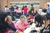 제이앤엠뉴스 | 고등학생들이 갈고닦은 솜씨로 어르신들에게 특별한 하루를 선물하며 세대를 잇는 따뜻한 정을 나눴다. 정읍시는 지난 15일, 글로벌학산고등학교 학생·교사 60명과 함께 섬진강댐 노인복지관을 찾아 ‘농촌재능나눔’ 활동을 펼쳐 큰 호응을 얻었다. 이날 학생들은 각자의 전공을 살려 어르신 80여 명을 위한 다채로운 재능을 뽐냈다. 보건간호과 학생들은 건강비누 만들기를 도왔고, 글로벌외식조리과 학생들은 직접 구운 빵과 전통 다식을 대접했다. 헤어미용과는 메이크업과 한복 코디를, 글로벌미디어콘텐츠과는 장수사진 촬영을 맡아 어르신들의 가장 고운 순간을 카메라에 담았다. 이 밖에도 압화 티코스터 만들기, 건강체조 등 다양한 프로그램이 어르신들의 큰 호응을 얻었다. 활동에 참여한 한 어르신은 “손녀 같은 학생들과 도란도란 이야기하며 즐거운 시간을 보내다 보니 시간 가는 줄 몰랐다”며 “다음에 또 이런 기회가 있으면 좋겠다”고 환하게 웃었다. 이번 행사는 올해 글로벌학산고등학교가 참여한 농촌재능나눔의 마지막 활동이었다. 학교는 앞서 8월과 9월에도 각각
