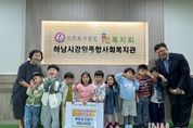 제이앤엠뉴스 | 시립감일리틀포레어린이집은 지난 10월 14일 하남시감일종합사회복지관(사회복지법인 휴먼복지회 운영)에 후원금을 전달했다. 이날 전달된 후원금은 시립감일리틀포레어린이집에서 '또랑또랑 아나바다 바자회'를 진행해 얻은 수익금으로, 500,000원의 후원금을 전달했다. 시립감일리틀포레어린이집 황선옥 원장은 “또랑또랑 아나바다 바자회로 나눔문화에 대해 적극 실천하는 시간이 됐다.”며, “특히, 원아들이 직접 바자회에 참여하고 수익금을 복지관에 전달하기에 지역사회에 대해 한번 더 생각하고 관심을 가지는 계기가 됐으면 한다.”고 말했다. 하남시감일종합사회복지관 김상환 관장은 “지역사회를 위해 수익금을 전달해주신 시립감일리틀포레어린이집의 따뜻한 마음에 감사드린다.”, “전달해주신 수익금은 꼭 필요한 이웃들에게 잘 사용하겠다.”며 고마운 마음을 전했다. 한편 시립감일리틀포레어린이집은 원생들과 함께 어려운 이웃을 위한 배려와 나눔을 실천하며 4년째 바자회 수익금을 하남시감일종합사회복지관에 기부하며 따뜻한 마음을 전하고 있다. 하남시감일종합사회복지관은 지역 내 취약계층을 위한 다양한 사업을