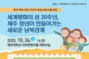 제이앤엠뉴스 | 제주특별자치도가 세계평화의 섬 지정 20주년을 맞아 청년세대가 주도하는 통일 논의의 장을 연다. 제주도는 24일 오후 2시 30분 제주대학교 아라컨벤션홀 대회의실에서 ‘2025년 한라-백두 청년지도자 육성 프로그램’을 운영한다. 제주도가 주최하고 제주통일미래연구원(원장 고성준)과 제주통일교육센터(센터장 김일환)가 주관하는 이번 행사는 ‘제주 청년이 만들어가는 새로운 남북 관계’를 주제로, 경색된 남북관계 속에서도 한반도의 평화와 통일 비전을 모색하는 자리로 마련됐다. 프로그램은 2부로 나눠 진행된다. 1부에서는 강근형 제주대 명예교수 사회로 공민석 제주대 정치외교학과 교수가 ‘트럼프 2.0 시대 세계질서의 변화와 한반도 평화’를 주제로 발표한다. 이어 하아름 제주대 정치외교학과 대학원생이 ‘제주특별자치도 남북교류협력사업 재개 준비 전략(서울시·경기도 사례 중심)’ 발표를 진행한다. 2부에서는 변종헌 제주대 교육대학 교수 사회로 ‘세계평화의 섬 제주, 평화·통일의 길’을 주제로 토크콘서트를 연다. 김규리 이화여자대학교 통일학연구원 객원연구위원이 ‘북한의 대남 적대시 정책