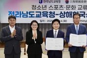 제이앤엠뉴스 | 전라남도교육청은 14일 상해한국상회와 ‘청소년 스포츠·문화 교류를 위한 업무협약(MOU)’을 체결했다. 이번 협약은 전남 학생들과 상해 지역 한국 청소년들이 스포츠를 매개로 협동심과 리더십을 기르고, 문화·역사 체험을 통해 세계시민 의식과 정체성을 키우기 위해 추진됐다. 양 기관은 앞으로 ▲ 청소년 스포츠 교류전 참가 협력 ▲ 현지 역사·문화 체험 프로그램 지원 ▲ 글로컬 인재 양성을 위한 국제교류 운영 ▲ 교육·체육 분야 행사 및 정보 공유 등을 추진할 예정이다. 특히, 상해는 일제강점기 대한민국 임시정부가 수립된 역사적인 도시로, 청소년들이 우리 민족의 독립정신과 애국심을 배울 수 있어 교육적으로 의미가 깊은 곳이다. 상해한국상회는 풍부한 경험과 인적·사회적 자산을 바탕으로 ▲ 청소년 교육 프로그램에 대한 전략적 투자 ▲ 한중 양국의 한국 학생 간의 지속 가능한 교류 ▲ 지역사회 네트워크를 활용한 교육 콘텐츠 재생산 등 교육 협력의 새로운 모델을 제시할 예정이다. 전남교육청은 전남의 학생들이 세계와 소통하며 미래를 준비할 수 있도록 교육 외교의 장을 넓히는 데 주력해