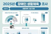 제이앤엠뉴스 | 문화체육관광부는 대한장애인체육회와 함께 전국 등록 장애인 1만 명(만 10세~69세)을 대상으로 진행한 ‘2025년 장애인 생활체육조사(2024년 9월~2025년 8월 기준)’ 결과를 발표했다. 장애인 생활체육 참여율은 주 2회 이상(1회당 30분 이상) 집 밖에서 운동하는 장애인 생활체육 완전 실행자 비율이다. 2025년도 장애인 생활체육 참여율은 34.8%로 조사돼 전년 대비 0.4%포인트(p) 소폭 감소했다. 주로 이용하는 운동 장소에 대해서 ‘체육시설’을 이용한다는 응답은 18.2%, ‘집안’에서 운동한다는 응답은 9.4%, ‘야외/등산로/공원 등 근처 야외’를 이용한다는 응답은 45.4%를 차지했다. 체육시설을 이용한 응답자를 대상으로 이유를 조사한 결과, ‘거리가 가까워서’라는 응답이 38.2%로 가장 많았고, 다음으로 ‘시설이용료가 무료 또는 저렴해서’ 22.8%, ‘전문적인 체육시설이 있어서’ 17.5% 순으로 조사됐다. 체육시설을 이용하지 않는 응답자를 대상으로 이유를 조사한 결과는 ‘혼자 운동하기 어려워서’라는 응답이 26.8%로 가장 많았고, 다음으로 ‘체육시설과 거리가 멀어