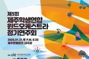 제이앤엠뉴스 | 제주특별자치도교육청이 주최하고 제주학생연합윈드오케스트라가 주관하는 ‘제5회 제주학생연합윈드오케스트라 정기연주회’가 31일 오후 6시 30분 제주문예회관 대극장에서 열린다. 제주학생연합윈드오케스트라는 제주 도내 중·고등학교 재학생들로 구성된 연합 예술단체로 2019년 고등학생 중심의‘제주고교연합 윈드오케스트라 다혼디’로 출범한 뒤 2023년 현재의 명칭으로 변경하며 중학생까지 참여 범위를 확대했다. 현재 도내 중학교 8개교, 고등학교 9개교 등 총 17개 학교에서 모인 60여 명의 학생이 단원으로 활동하며 음악적 역량을 키워가고 있다. 이번 정기연주회는 스승과 제자, 선후배가 음악으로 하나 되는 ‘연결’의 의미를 주제로 마련됐다. 1부 무대에서는 대기고등학교 현민관 교사의 지휘 아래 △머큐리(Mercury) △부드러운 빗속에서(In a Gentle Rain) △아르메니안 댄스 파트1번(Armenian Dances Part 1) 등 웅장한 관악 합주곡이 연주된다. 이어 제주고등학교 최재광 교사가 협연자로 나서 △그라나다(Granada) △뮤지컬 '지킬 앤 하이드'의 ‘지금