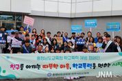 제이앤엠뉴스 | 충남교육청은 14일, 서산 성연중학교에서 학생들의 안전한 학교문화 조성을 돕기 위해 ‘등굣길 학교폭력 예방 캠페인’을 실시했다. 이번 캠페인은 학교폭력의 심각성에 대한 교육공동체의 경각심을 높이고, 지역사회가 함께 참여하는 학교폭력 예방 활동을 강화하기 위해 마련됐다. 캠페인 현장에는 성연중학교 학생 자치회와 학부모희를 비롯해 교직원, 충남도의회 이용국 의원, 충남교육청, 서산교육지원청, 서산경찰서, 법무부청소년범죄예방위원회 관계자 등 약 90명이 참여했다. 참여자들은 등교하는 전교생을 대상으로 학교 통학로에서 현수막과 팻말을 활용하여 학교폭력 예방을 위해 서로가 존중하고 배려하는 관계 형성의 중요성을 강조했다. 특히 학생자치회와 학부모회가 주도적으로 참여하여 또래 친구들과 자녀에게 학교폭력 근절의 필요성과 따뜻한 응원의 말을 전하며 학교폭력 예방의 실천 분위기를 확산했다. 김지철 교육감은“학생들이 안심하고 등교할 수 있는 교육환경을 만들기 위해 교육공동체 중심 학교폭력 예방 활동을 지속적으로 추진하겠다”라며, “아울러 학교, 교육청, 지역사회와 함께 학교폭력으로부터 학생을 보호하는 안전망을 더