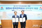 제이앤엠뉴스 | 김천시는 지난 13일 한국전력공사 대구본부 김천지사(지사장 박용성)와 함께 ‘1인 가구 안부살핌서비스 '든든e살핌'’ 업무협약을 체결했다. 이번 협약은 급속히 증가하는 1인 가구의 고립과 사회적 단절, 그리고 복지 사각지대 문제에 대응하기 위해 AI 기술을 활용한 스마트 돌봄 체계를 구축하고, 지역 맞춤형 사회안전망을 강화하기 위한 것이다. 협약에 따라 양 기관은 전력 및 통신 데이터를 기반으로 1인 가구의 생활 패턴을 분석하고, 일정 시간 동안 전력 사용이 없거나 급격한 변화가 발생할 경우 이를 이상 징후로 인식해 담당 공무원 등에게 즉시 알림을 전송한다. 이후 현장 확인과 신속한 조치를 통해 고립된 시민의 생명과 안전을 지키는 AI 돌봄 체계를 구현하게 된다. 이번 사업은 고독사 위험군 30가구를 대상으로 우선 추진되며, 서비스 이용요금(월 3,300원)은 한국전력공사 대구본부 김천지사 러브펀드에서 전액 부담한다. 박용성 한국전력공사 김천지사장은 “지역사회와 함께 사회적 책임을 실천할 수 있게 되어 매우 뜻깊다.”라며, “전력 데이터를 활용한 AI 돌봄서비스가 어르