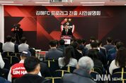 제이앤엠뉴스 | 2025년 K3리그 우승컵을 들어올린 김해FC2008(이하 김해FC)이 내년 프로리그 진출에 따른 시민설명회를 성황리에 개최했다. 28일 김해종합운동장에서 열린 설명회에는 재단법인 김해FC 이사장인 홍태용 김해시장과 축구협회 임원진과 관계자를 비롯해 김해시 체육회와 유관단체, 시민과 축구팬 200여명이 참석해 설명회장을 가득 메웠다. 현장에 참석하지 못한 시민들은 김해시 공식 유튜브 채널에서 생중계를 시청했다. 김해FC는 구단의 프로리그 진출 배경에 대해 ‘시민 스포츠 문화 요구 충족’과 ‘지역 경제 파급효과 확대’를 통한 구단 발전 선순환 고리 구축이 목적이라고 밝혔다. 중장기 목표로 2030년까지 홈 경기 평균 관중 5,000명, 2035년까지 구단 재정 자립 70% 달성 등을 내세우며 이를 실현하기 위한 구단의 5대 핵심전략인 ‘Iron Project Series’를 구체적으로 설명했다. 또 김해FC의 미래 비전인 ‘축구를 넘어서 김해의 역사와 현재 그리고 미래를 잇는 생활 속 시민구단’에 대해 ▲지자체 예산 의존에서 벗어나 자립하는 구단 ▲단순한 축구팀을 넘어