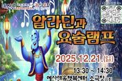 제이앤엠뉴스 | 예산군은 아동친화도시 조성의 일환으로 가족참여형 뮤지컬 ‘알라딘과 요술램프’를 12월 21일 예산앤유행복센터에서 공연한다고 밝혔다. 이번 공연은 가족이 함께 즐기는 문화 체험을 통해 놀이·문화 영역 확대와 아동 발달권 증진을 도모하기 위해 마련됐다. 뮤지컬 ‘알라딘과 요술램프’는 원작을 아이들의 눈높이에 맞춰 재구성하고 무대체험 등 직접 참여 요소를 강화해 가족 모두가 몰입할 수 있도록 구성됐다. 관람을 희망하는 관내 아동 동반 가족은 12월 1일부터 12월 12일까지 사전 접수할 수 있으며, 선착순 모집으로 인원 충족 시 조기 마감된다. 신청은 공연 포스터의 정보무늬(QR코드)를 스캔해 신청서 작성 후 제출하는 방식으로 진행된다. 군 관계자는 “참여형 뮤지컬을 통해 관객 모두가 무대의 주인공이 돼 상상력과 감성을 키우는 특별한 시간이 되길 바란다”며 “관내 아동이 폭넓은 문화 경험을 누릴 수 있도록 다양한 프로그램을 마련해 아동친화도시 조성을 위해 노력하겠다”고 말했다. 한편 군은 아동의 권리가 존중받고 모든 아동이 행복하게 성장할 수 있는 환경을 만들기