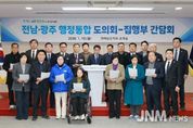 제이앤엠뉴스 | 전라남도의회는 19일 도의회에서 김영록 전라남도지사와 김대중 전라남도교육감이 참여한 가운데 ‘전남·광주 행정통합 도의회–집행부 간담회’를 열고, 통합 추진 방향과 주요 쟁점에 대해 심도 있는 논의를 진행했다. 이번 간담회는 지난 13일에 이어 두 번째로 마련된 소통의 자리로, 행정통합 추진의 실질성과 현실성을 높이기 위한 다양한 의견 교환이 이뤄졌다. 특히, 통합의 또 다른 핵심 주체인 전라남도교육감이 처음으로 참여해, 행정통합이 교육자치의 권한과 학교 현장 운영에 미칠 영향까지 함께 논의했다는 점에서 의미를 더했다. 이날 도의회는 행정통합에 따라 통합 자치단체의 명칭을 ‘전남광주특별시’로 변경 추진할 것을 제안했다. 도의회는 명칭 문제는 무엇보다 도민의 공감과 사회적 합의가 전제되어야 한다고 강조하고 지역의 역사성과 정체성, 상징성을 함께 담아내야 하는 사안이라는 입장을 밝혔다. 또한, 통합 추진 과정에서 ▲행정 및 의회 통합청사 지정 ▲도의회의 특별법안 마련에 대한 적극적 참여 ▲지역 간 균형발전 보장 ▲교육자치의 위상 정립 ▲도민 참여 절차의 제도적 확보 등을 주요