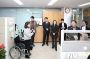 제이앤엠뉴스 | 아산시의회 문화복지환경위원회가 지난 9일, 제264회 임시회 기간 중 주요업무계획보고의 일환으로 최근 신설된 ‘장애인복지과’ 사무실을방문해 현장 점검을 실시했다. 이번 점검은 장애인 복지 행정의 컨트롤타워인 장애인복지과가 정작 수요자인 장애인들이 이용하기에 불편함이 없도록 설계됐는지, 접근성과 편의 실태를 직접 확인하기 위해 마련됐다. 현장에는 이춘호 위원장과 김은아 부위원장을 비롯해 맹의석, 천철호, 김미성 위원과 관계 공무원들이 참석했다. 현장을 둘러본 의원들은 신설 사무실의 열악한 접근성에 대해 우려를 표했다. 현장에 동행한 장애인복지과장은 “사무실 입구가 매우 협소해 일반 휠체어조차 이동이 어렵고, 특히 전동 휠체어는 출입이 사실상 불가능한 상황”이라며 “사무실 내부 활동 공간도 제약이 많아 민원인들이 큰 불편을 겪고 있다”고 설명했다. 위원들은 장애인 복지 행정을 전담하는 부서임에도 불구하고, 기본적인 ‘무장애’ 환경조차 갖추지 못한 점을 강하게 질타했다. 위원들은 “민원을 처리하러 온 장애인들이 문턱에서 발길을 돌려야 하는 상황은 어불성설”이라며 안타까움을 표했다. 이춘호