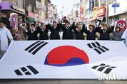 제이앤엠뉴스 | 충북 보은군에서 3·1절 107주년을 맞아 태극기 만세운동이 열렸다. 한국자유총연맹 보은군지회가 주관한 이번 행사에는 보훈단체, 사회단체, 군민 등 약 900명이 참여했다. 참가자들은 중앙사거리에서 뱃들공원까지 태극기를 들고 행진하며 대한독립만세를 외쳤다. 거리 곳곳에서는 응원과 박수가 이어졌고, 태극기가 일제히 펄럭이는 모습이 현장에 모인 이들에게 깊은 인상을 남겼다. 행진이 끝난 뒤에는 평화의 소녀상 앞에서 헌화가 진행됐고, 독립선언서 낭독을 통해 자주독립의 의미를 되새겼다. 이어 보은군립합창단의 공연이 이어졌으며, 참가자 전원이 ‘독도는 우리땅’ 노래에 맞춰 플래시몹을 펼치며 행사의 마지막을 장식했다. 최재형 보은군수는 이번 행사가 군민과 함께 대한독립만세의 함성을 되새기고, 선열들의 희생과 독립정신을 다시 마음에 새기는 계기가 되길 바란다고 밝혔다.