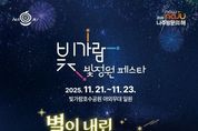 제이앤엠뉴스 | 전라남도 나주시가 깊어지는 가을밤, 시민과 관광객에게 환상적인 빛의 향연을 선사한다. 나주시는 오는 11월 21일부터 23일까지 3일간 빛가람 호수공원 일원에서 ‘별이 내린 빛의 정원’을 주제로 ‘2025 빛가람 빛정원 페스타’를 개최해 시민과 함께하는 늦가을 야간축제의 낭만을 밝힌다. 나주시는 이번 축제가 빛과 자연, 예술이 어우러진 도심형 야간정원 축제로 환상적인 조명 연출과 미디어아트를 통해 관람객이 마치 동화 속에 들어온 듯한 ‘빛의 정원’을 체험할 수 있도록 준비하고 있다고 10일 밝혔다. 개막식은 11월 21일 저녁 6시 식전 공연을 시작으로 7시 개막선언과 미디어퍼포먼스 크루의 개막 공연, 점등 퍼포먼스, 빛정원 라운딩 순으로 진행된다. 빛과 음악, 미디어아트가 어우러지는 개막 무대를 통해 축제의 서막을 화려하게 장식할 예정이다. 이번 페스타의 하이라이트인 빛 조형물 전시 구간은 빛가람호수공원 야외무대 뒤 여울다리 입구에서 베매산 산책길까지 이어진다. 다채로운 빛 조형물과 미디어아트 장식이 조성돼 밤하늘 아래 반짝이는 ‘빛의 터널’과 ‘별빛 산책
