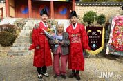 제이앤엠뉴스 | 고창군 고창향교(전교 한상용) 17일 경로 효친 사상을 북돋아 높이기 위해 기로연(耆老宴)을 개최했다. 이날 고창향교 기로연에는 심덕섭 고창군수와 유림회원 등 100여 명이 참석한 가운데 행사를 통해 선현(先賢)의 훌륭한 ‘효’ 정신을 기렸다. 기로연은 조선시대에 70세 이상 원로 문신에게 매년 봄 상사(上巳 : 음력 3월 3일)과 가을 중양(重陽 : 음력 9월 9일)에 베풀었던 잔치다. 오늘날에는 향촌 유생들의 교화(敎化)와 상규(相規)의 향음주례(鄕飮酒禮) 정신을 담고 있어 지방 유림이 유교 문화와 경로효친 사상을 계승 발전시키는데, 크게 기여하고 있다. 특히 이날 장수상을 수상한 94세 조아지 어르신(고창읍)은 훌륭한 지역사회의 일원으로 이웃을 사랑하는 마음이 남다르고 아름답게 장수했기에 그 의미를 더했다. 고창향교 한상용 전교는 “효를 근간으로 하는 우리의 아름다운 전통 윤리와 미풍양속이 점차 사라져 가는 현대사회에서 이러한 전통 유교문화가 더욱 계승 발전할 수 있도록 노력하겠다”라고 말했다. 심덕섭 고창군수는 “오늘 기로연 행사는 경로효친 사상을 되