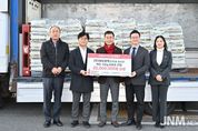 제이앤엠뉴스 | ㈜케이엠엑스(대표이사 김성규)가 12월 5일 오후 4시 30분 중구청 구청장실을 찾아 울산사회복지공동모금회를 통해 2,000만 원 상당의 이웃돕기 백미 10kg 500포를 전달했다. 이번 전달식에는 김영길 중구청장과 김영규 ㈜케이엠엑스 부사장 등 3명이 참석했다. 해당 후원 물품은 지역 내 취약계층 500세대에 배부될 예정이다. 한편, ㈜케이엠엑스는 2005년 설립된 정비용 부품 제조 및 설비 세정장비 개발 전문기업으로, 중구에 지난 2020년 마스크 3,000개와 백미 200포, 2023년 백미 560포, 2024년 삼계탕 1,800개를 전달하는 등 지역사회를 위한 나눔 활동을 꾸준히 펼치고 있다. ㈜케이엠엑스 관계자는 “주변에 희망과 사랑을 전하고자 후원에 나서게 됐다”며 “앞으로도 지역사회와 함께 성장해 나가는 기업이 되기 위해 노력하겠다”고 말했다. 김영길 중구청장은 “주변을 돌아보며 따뜻한 마음으로 이웃사랑을 실천해 주셔서 감사드린다”며 “소중한 뜻에 따라 도움이 필요한 가정에 쌀을 잘 전달하겠다”고 밝혔다. [뉴스출처 : 울산시중구]