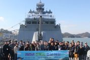 제이앤엠뉴스 | 전북특별자치도는 5일 해군 제3함대 소속 전북함을 방문하여 도내 병역명문가, 안전모니터봉사단, 도시군 공무원 등 총 33명이 참여한 안보 현장체험 프로그램을 실시했다고 밝혔다. 이번 방문은 지난해에 이어 두 번째로 추진된 프로그램으로, 특히 전북특별자치도와 전북함 간 자매결연 10주년을 기념하는 의미 있는 행사로 마련됐다. 참가자들은 전북함의 주요 임무와 해양안보에 대한 설명을 듣고, 갑판과 주요 장비를 견학하는 등 다양한 체험 프로그램을 통해 해군의 역할과 국가 안보의 중요성을 직접 확인하는 시간을 가졌다. 또한 이날 행사에서는 전북함 전비태세 향상과 병영문화 혁신에 기여한 장병에게 도지사 표창을 수여해 장병들의 사기를 북돋웠으며, 참가자들은 장병들과 함께 함정 내 병영식사를 체험하고 교류하는 시간을 가지며 장병들의 노고에 감사의 뜻을 전했다. 이번 행사를 통해 전북함과 전북특별자치도 간 유대와 협력 관계도 한층 강화되는 계기가 됐다. 정광모 전북특별자치도 안전정책과장은 “전북함은 지난 10년 동안 전북도와 깊은 신뢰를 바탕으로 특별한 인연을 이어왔다.”며“도민을 대표해 전북함 장