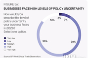 제이앤엠뉴스 | 글로벌 무역 관측소 연례 전망: 관세, 비용 및 정책 불확실성에도 불구하고 94%가 2026년도 성장세를 2025년도와 유사 내지 상회할 것으로 예상 다보스, 스위스, 2026년 1월 21일 -- 글로벌 무역 전망은 취약해 보이지만 비즈니스 신뢰도는 그렇지 않다. 이는 DP 월드(DP World)의 신간 글로벌 무역 관측소(Global Trade Observatory, GTO) 2026 연례 전망 보고서(Annual Outlook Report 2026)의 요점으로, 응답자의 94%가 마찰과 변동성 증가에도 불구하고 2026년도 무역 성장세가 2025년도와 비슷하거나 이를 상회할 것으로 예상했다. 이번 결과는 다보스에서 열리는 세계경제포럼(World Economic Forum) 연례 회의를 앞두고 8개 산업 분야와 19개국에 포진한 3500명의 공급망 및 물류 고위 경영진을 대상으로 실시한 설문조사를 기반으로 한다. 전체적으로 54%는 무역 성장이 2025년보다 빠를 것으로 예상했고 40%는 동일할 것으로 내다봤다. 이는 53%가 정책 불확실성이 높거나 매우 높을 것으로 예상하고 90%가