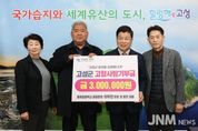 제이앤엠뉴스 | 고성군은 12월 4일, 동해초등학교 이두만 회장과 동문들이 고향의 밝은 미래를 응원하는 뜻을 모아 고향사랑기부금 300만 원을 기탁했다고 밝혔다. 이번 기부는 동해초등학교 총동문회가 고향 고성의 지속 가능한 발전을 바라는 마음으로 이루어진 것으로, 고향사랑기부제 활성화에도 큰 힘이 될 것으로 기대된다. 이두만 회장은 “고향을 향한 애정과 동문들의 따뜻한 뜻을 모아 기부하게 됐다”라고 말했다. 김종춘 인구청년추진단장은 “2025년 연말을 앞두고, 고향을 향한 동문 여러분의 따뜻한 나눔과 응원에 깊이 감사드린다”라며, “기탁해 주신 기부금은 고성의 미래를 위한 소중한 자원으로, 군민 모두가 체감할 수 있는 곳에 정성껏 사용하겠다”라고 밝혔다. 한편, 고향사랑기부제는 개인이 주민등록상 주소지를 제외한 다른 지방자치단체에 연간 최대 2,000만 원까지 기부할 수 있는 제도이다. 10만 원까지는 전액 세액 공제가 적용되며, 10만 원 초과분에 대해서는 16.5%의 세액 공제를 받을 수 있다. 또한, 기부자는 기부금의 30% 이내에서 지역 특산품 등 답례품을 받을 수 있다. [