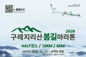 제이앤엠뉴스 | 전남 구례군은 아름다운 자연환경을 배경으로 한 ‘제1회 구례 지리산봄길 마라톤대회’가 오는 5월 2일 구례공설운동장에서 개최된다고 밝혔다. 이번 대회는 오마이뉴스 광주전라본부와 구례군육상연맹이 주최·주관하고 구례군이 후원하는 행사로 마라톤 종목 저변 확대와 구례 지역 홍보를 위해 마련됐다. 대회종목은 하프코스(21.0975km), 10km, 5km 총 3개 부문이다. 참가자들은 오전 8시 30분부터 순차적으로 출발해 지리산의 봄 풍경을 따라 달리게 된다. 참가 신청은 2월 23일부터 공식 홈페이지를 통해 접수를 시작하며, 모집 인원 4,000명 선착순으로 마감된다. 또한 원활한 대회 운영을 위해 자원봉사자도 함께 모집한다. 구례군 관계자는 “제1회 대회인 만큼 참가자 모두가 만족할 수 있도록 지원을 아끼지 않겠다”며 “지역 주민과 전국의 참가자들이 함께 어우러지는 건강과 문화의 축제로 자리매김하길 바란다”고 말했다. [뉴스출처 : 전라남도구례군]