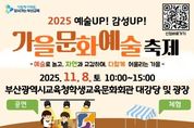 제이앤엠뉴스 | 부산광역시교육청 유아교육진흥원은 오는 11월 8일 오전 10시부터 오후 3시까지 학생교육문화회관에서 부산 시내 3~5세 유아와 동반 가족 3,000여 명을 대상으로 ‘예술UP! 감성UP! 가을문화예술축제’를 개최한다. 이번 축제는 가을의 정취 속에서 공연과 체험, 자연이 어우러진 다채로운 프로그램을 통해 유아와 가족이 함께 즐기며 따뜻한 추억을 쌓을 수 있도록 마련했다. 축제는 총 4개 마당으로 구성했다. 공연마당에서는 동요와 함께하는 현악 클래식 연주, 미술 기법을 활용한 드로잉 공연 등 눈과 귀를 사로잡는 무대가 펼쳐지고, 예술창의마당에서는 자개 열쇠고리 만들기, 컵 받침 만들기, 만화경 만들기 등 예술과 과학이 결합된 체험을 통해 유아의 상상력과 창의성을 키운다. 자연마당에서는 가을 북 피크닉과 중고도서 나눔 행사가 열려 책과 자연이 어우러진 여유로운 시간을 제공하며, 어울림마당에서는 에어바운스, 전통·다문화 놀이, 먹거리 나눔 등 온 가족이 함께 참여하고 소통하는 체험형 프로그램이 운영된다. 공연 관람은 사전 신청제로 진행한다. 10월 29일 오전 9시부터 11월 6일 오후 3시까지 부산