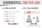 제이앤엠뉴스 | 강원특별자치도는 국비 확보 10조 시대에 진입한 가운데, 인구 1인당 국비 확보액이 약 680만 원으로 전국 1위에 해당한다고 밝혔다. 2026년도 강원특별자치도 국비 확보액은 총 10조 2,600억 원으로 경기, 경북, 충남, 경남에 이어 전국 시도 중 5위에 해당한다. - 이는 도보다 인구가 2배 이상 많은 인천(6조 4,000억 원)과 부산(10조 2,000억 원)보다 많은 수치이다. 특히 국비 총액을 인구수로 환산한 인구 1인당 국비 확보액은 약 680만 원으로 전국 평균 413만 원을 크게 웃도는 수치다. 도는 이번 국비 확보 성과가 정부 차원에서 도가 추진 중인 주요 사업의 필요성과 중요성에 대한 공감한 결과로 보고 있다. 도는 앞으로 국비가 단순한 규모에 그치지 않도록 사업 추진의 완성도와 체감 성과를 높이는 데 행정력을 집중할 계획이다. 김진태 지사는 “국비 10조 원이 체감되기 어려울 수 있지만 총 규모로는 전국 기준 5위, 도민 1인당으로 환산하면 약 680만 원으로 전국 1위에 해당한다”며, “확보된 국비가 현장에서 차질없이 집행돼 도민이