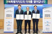 제이앤엠뉴스 | 전북특별자치도가 국내 금융중심지 선두로 도약하는 서막이 열렸다. 도는 23일 도청에서 김관영 전북자치도지사, 김성주 국민연금공단 이사장, 양종희 KB금융그룹 회장이 참석한 가운데 ‘자산운용 특화 금융생태계 조성 및 지역경제 활성화’를 위한 3자 업무협약을 체결했다. 이날 협약은 지난 1월 KB금융그룹이 발표한 전북혁신도시 내 ‘KB금융타운’ 조성 계획의 실질적 후속 조치로, 민·관·공이 원팀을 이뤄 전북을 글로벌 자산운용 거점으로 키우고 지역 경제의 자생적 성장 동력을 확보하기 위해 마련됐다. ■금융거점 조성부터 기후테크 펀드까지…전방위 협력 전북자치도·국민연금공단·KB금융그룹은 전북혁신도시 내 ‘KB금융타운’ 조성을 위해 역할을 나눠 맡는다. 도는 행정적 지원을 전담하고, 국민연금공단은 민간 금융기관과의 자산운용 협력체계를 강화해 전북 특색의 금융 생태계 구축을 위한 마중물 역할을 담당한다. KB금융그룹은 KB증권·KB자산운용 등 핵심 계열사 기능을 집결시키며, 지난달 발표한 250명 규모에서 늘어난 약 380명이 전북혁신도시에 근무할 예정이다. 여기에 전북혁신도시 외 전주 지역 근무 인원까지