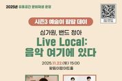 제이앤엠뉴스 | 의왕시 이팝아트홀(의왕시 왕곡로74)이 11월 22일 오후3시, 지역 예술인들이 함께 꾸미는 음악 축제 ‘Live Local:음악, 여기에 있다’를 개최한다. 이번 공연은 지역의 숨은 전문예술인을 발굴·지원하고 예술인 간 네트워크를 형성하기 위해 기획된 무대로, 시민들이 일상 속에서 가까이 음악을 즐길 수 있는 특별한 시간을 선사한다. 무대에는 의왕을 중심으로 활동 중인 밴드 ‘청아’와 싱어송라이터 ‘심가원’이 출연한다. 두 아티스트는 자신만의 감성과 음악 세계를 바탕으로 도시의 일상과 청춘의 순간들 따뜻한 멜로디로 풀어낼 예정이다. 밴드 ‘청아’는 서정적이면서도 에너지 넘치는 사운드와 깊이 있는 보컬, 따뜻한 선율로 관객의 공감을 이끌 예정이다. 심가원은 진솔한 가사와 부드러운 음색으로 사람 사이의 감정을 노래하며 공감을 전한다. 윤은숙 의왕시 문화관광과장은 “이번 공연은 지역 예술인들이 주체가 되어 시민과 호흡하는 뜻깊은 무대”라며 “많은 분들이 지역에서 피어나는 예술의 생동감을 즐기셨으면 좋겠다”고 말했다. [뉴스출처 : 경기도 의왕시]