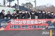 제이앤엠뉴스 | 김천상무 임직원과 팬이 함께 지역 사회에 온기를 전했다. 김천상무프로축구단이 12월 17일, 김천시 모암동 일대를 찾아 ‘사랑의 연탄 나눔’ 봉사활동을 진행했다. 행사에는 김천상무 임직원과 함께 ‘2025 팬즈데이 참여자가 함께 했다. 김천상무는 관내 에너지 취약 계층의 따듯한 겨울에 보탬이 되고자 2022년부터 ‘사랑의 연탄 나눔 행사’를 이어오고 있다. 특별히 올해는 사무국 임직원과 함께 팬이 동참하여 의미를 더했다. 김천상무는 올해를 시작하며 진행한 ‘2025 팬즈데이’ 수익으로 마련했다. 이를 통해 김천 시민에게 다가가기 위한 노력은 항상 계속된다는 점을 간접적으로 드러냈다. 봉사활동에 참석한 팬은 “시즌이 끝나서 아쉬움이 있었는데, 김천상무와 함께 뜻깊은 활동을 할 수 있어서 보람 있었다. 앞으로도 이런 활동이 지속되어서 지역 사회에 따듯함을 전할 수 있었으면 좋겠다.”라고 소감을 전했다. 김천상무 이재하 대표이사는 “김천 시민에게 다가가기 위한 김천상무의 노력은 비시즌에도 계속된다. 동참해 주신 팬 여러분께 감사의 말씀을 드리며, 김천 시민의 따듯한 겨울에 조