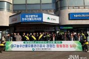 제이앤엠뉴스 | 대구농수산물유통관리공사는 12월 4일, 동절기 화재 및 안전사고를 선제적으로 예방하기 위해 대구농수산물도매시장 전역에서 경영진과 전문의용소방대가 참여하는 합동 안전점검을 실시했다. 이번 점검은 겨울철 난방기 사용 증가, 낮은 기온으로 인한 결로 및 전기적 위험 등 화재 취약 요인이 급증하는 시기에 맞춰 대구농수산물도매시장 내 선제적 안전관리 체계를 확립하기 위해 추진됐다. 점검에는 김상덕 사장을 비롯한 재난안전 업무 관계자와 전문의용소방대원 등 총 30여 명이 참여했다. 이들은 대구농수산물도매시장 내 관리동, 수산동, 농산A·B동, 잔품처리장, 차상경매장 등 주요 건축물과 현장을 순회하며 위험요소를 집중적으로 점검했다. 김상덕 대구농수산물유통관리공사 사장은 “동절기 화재는 작은 부주의에도 큰 인명 및 재산 피해로 이어질 수 있으므로 위험요인을 사전에 발굴하고 즉시 조치하는 것이 무엇보다 중요하다”며, “이번 활동을 계기로, 누구나 안심하고 이용할 수 있는 도매시장 환경을 조성하는 데 최선을 다하겠다”고 말했다. 대구농수산물유통관리공사 관계자는 “점검 과정에서 확인된