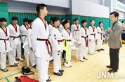 제이앤엠뉴스 | 충청북도교육감 윤건영이 4일 제55회 충청북도소년체육대회가 열리는 경기장을 방문해 참가 선수들을 격려했다. 윤 교육감은 충북스포츠센터에서 태권도 경기에 출전한 학생선수들을 만나, 그동안의 노력이 결실을 맺는 시간이 되길 바란다고 전했다. 그는 학생들이 서로를 응원하며 도전하는 체육문화의 의미를 강조했다. 이어 경기장 현장에서 종목협회 임원들과 운영진을 만나 학생들의 안전사고 예방에 각별한 주의를 당부했다. 이번 대회는 3월 20일부터 이달 11일까지 진행되며, 충북 지역 초등학생 910명과 중학생 1,101명이 참가 중이다. 대회에서 선발된 충북 대표 선수들은 5월 23일부터 26일까지 부산광역시에서 개최되는 제55회 전국소년체육대회에 출전한다. 윤건영 교육감은 "자신의 한계를 넘어 당당히 도전하고 서로의 도전을 응원하는 성숙한 체육문화 속에서, 그동안의 노력과 성장을 나누는 뜻깊은 시간이 되길 바란다"며 "이번 대회를 계기로 한층 더 도약할 여러분의 밝은 미래를 진심으로 응원한다"라고 말했다.