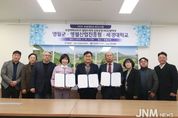 제이앤엠뉴스 | 영월군은 10일 세경대학교, 재단법인 영월산업진흥원과 함께 첨단소재 산업 인재 양성과 지역 산업 활성화를 위한 업무협약(MOU)을 체결했다. 이번 협약은 세경대학교 첨단소재과를 중심으로 지역 맞춤형 전문인력을 육성하고, 산업현장과 연계한 실무형 교육체계를 구축하기 위해 마련됐다. 협약에 따라 세 기관은 ▲기관 간 협력체계 구축 ▲첨단소재과 교육과정 공동 개발 및 운영 ▲첨단소재 분야 전문가 교류 ▲전문 장비 및 기자재 활용 지원 ▲졸업생 취업 연계 ▲기타 공동사업 발굴 등 다양한 분야에서 상호 협력하기로 했다. 이번 협약을 통해 영월군은 첨단소재 산업을 지역 신성장 동력 산업으로 육성하고, 지역 인재가 지역기업에 정착하는 선순환 구조를 만들겠다는 방침이다. 최명서 영월군수는 “이번 협약은 단순한 서명이 아니라 영월의 미래 산업을 함께 키워가는 출발점으로, 세 기관이 청년이 떠나지 않는 영월, 기업이 찾아오는 영월을 함께 만들어 가겠다.”고 밝혔다. [뉴스출처 : 강원도 영월군]